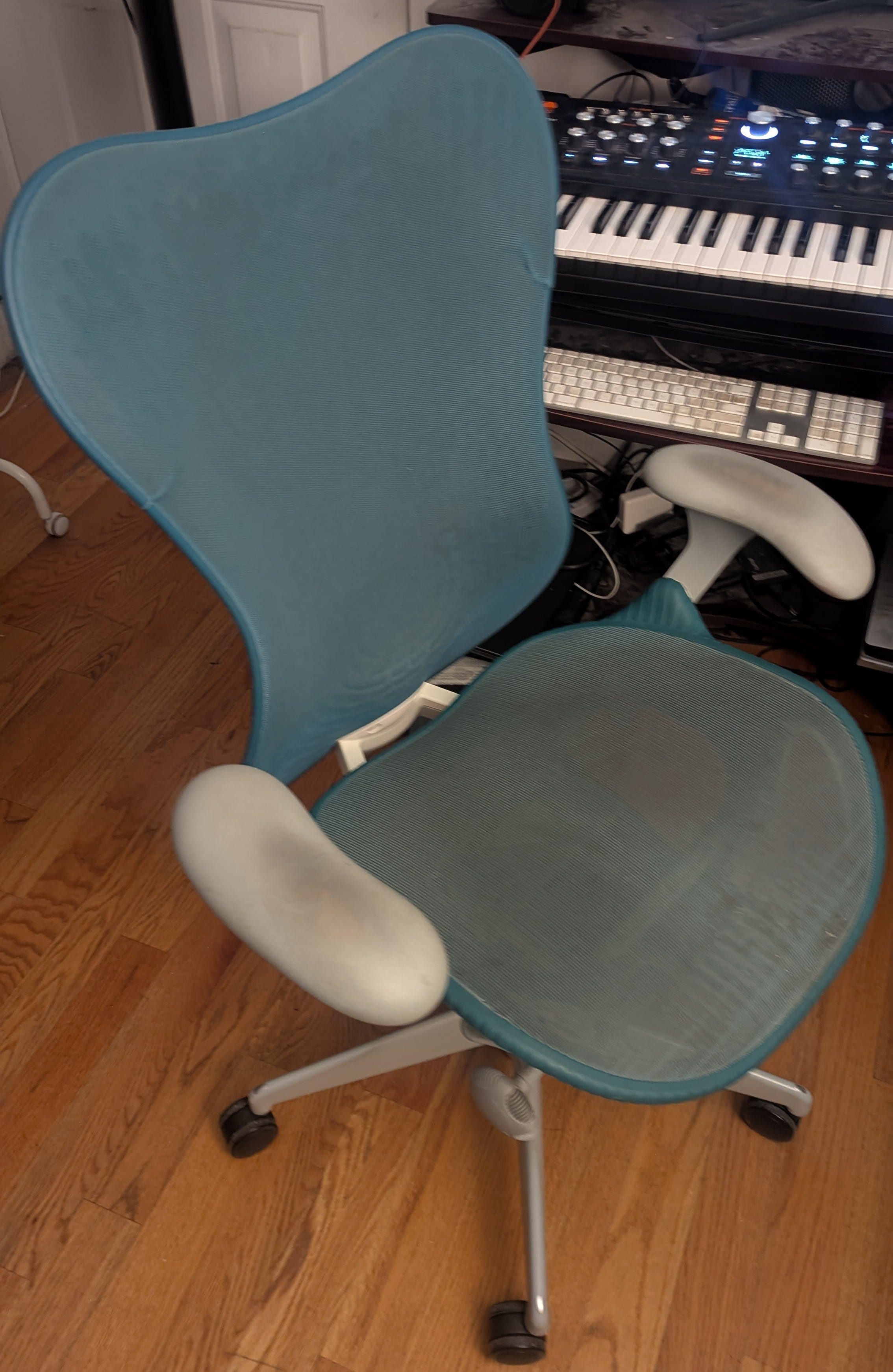 The object that is easily the most important part of my creative output and process. One that both dominates and aesthetically doesn’t fit in my creative space. My Studio chair. About 5 years ago I got a sweet deal on a Herman Miller Mirra 2 off FB marketplace and it’s been a game changer. I can literally sit in that chair all day without pain or discomfort, and I make almost all of my creative output sitting in that chair. It’s literally the foundational object of my creative process. So, If you have the means, please go buy yourself a nice studio/office chair. It might change your life.